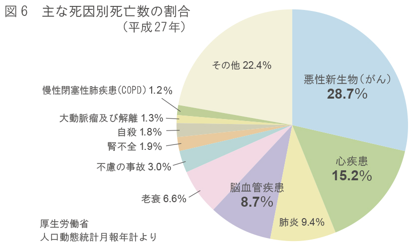 ここで、図6「主な死因別死亡数の割合」を見てください。